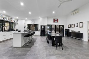 • Generous air-conditioned open plan living with vaulted ceilings, and a chef’s kitchen with island bench.