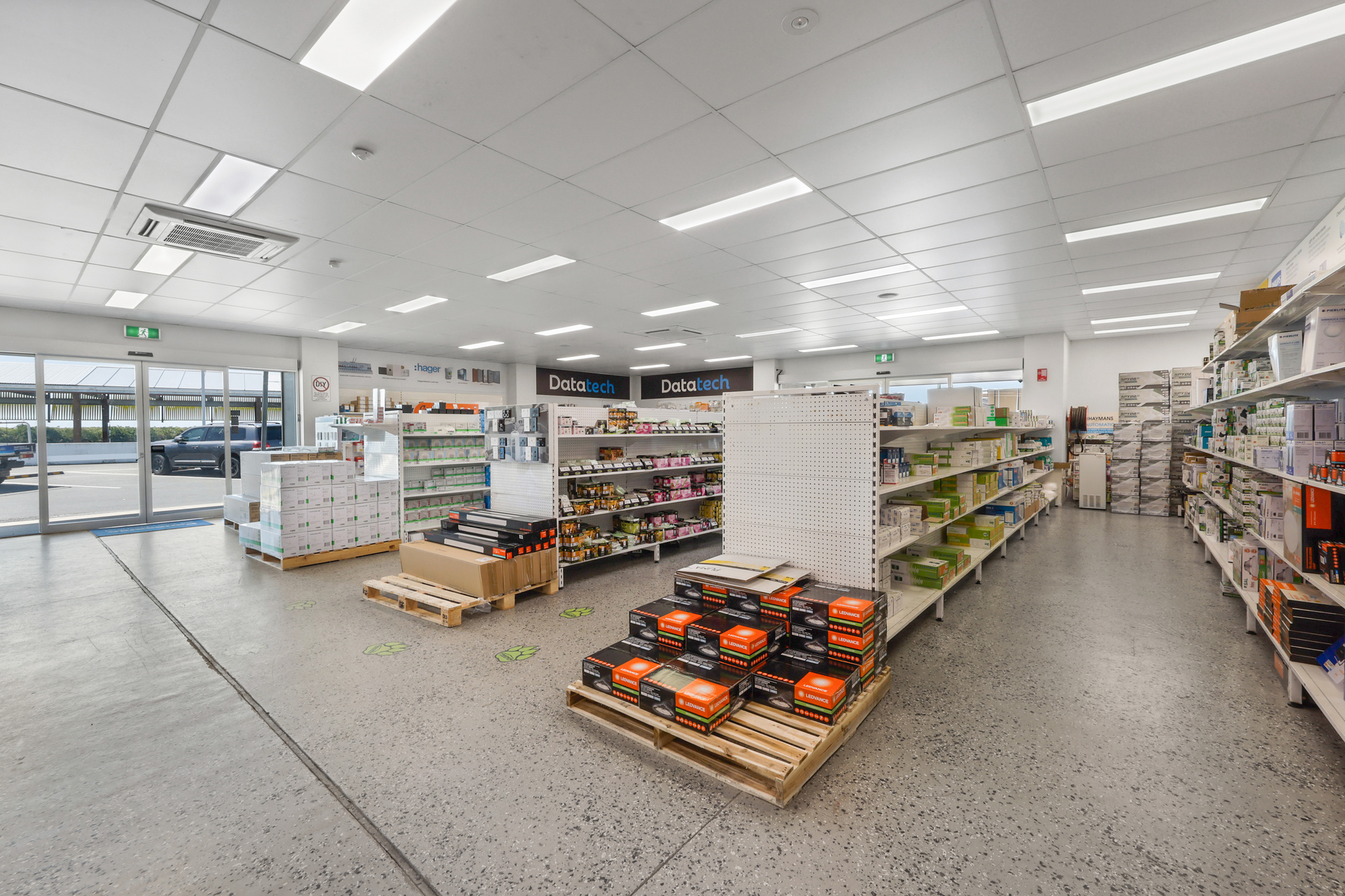 The building itself includes a large warehouse to store or operate, with multiple air-conditioned offices and a large, bright showroom.