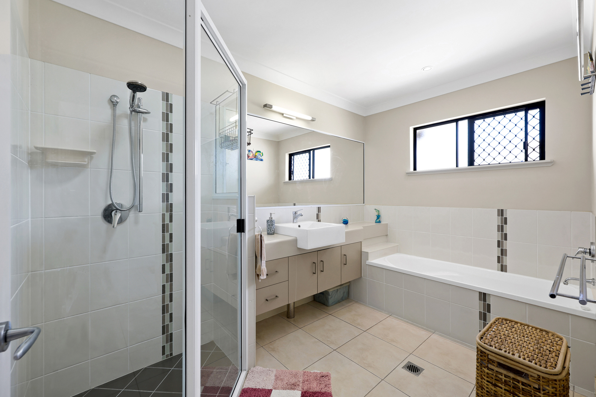 The large block-rendered home features four generous bedrooms, all with built-in wardrobes and air conditioners, plus a media room complete for cosy movie nights. The heart of the home is the spacious kitchen, equipped with a large gas cooktop, massive electric oven, and dishwasher. Open-plan living and dining areas flow seamlessly to the expansive verandah – where you can take in the panoramic views and enjoy the cooling breezes. The home’s bathrooms and ensuite are beautifully finished, complemented by a spacious laundry.