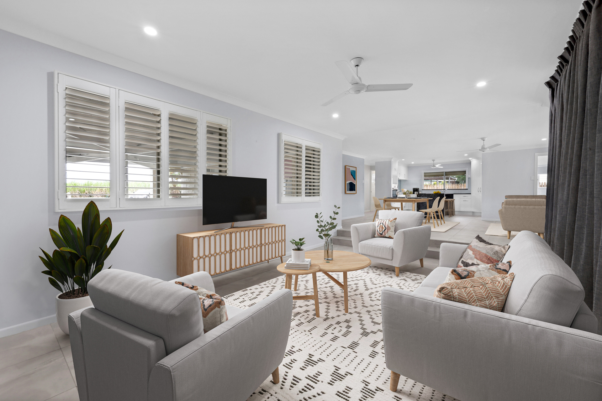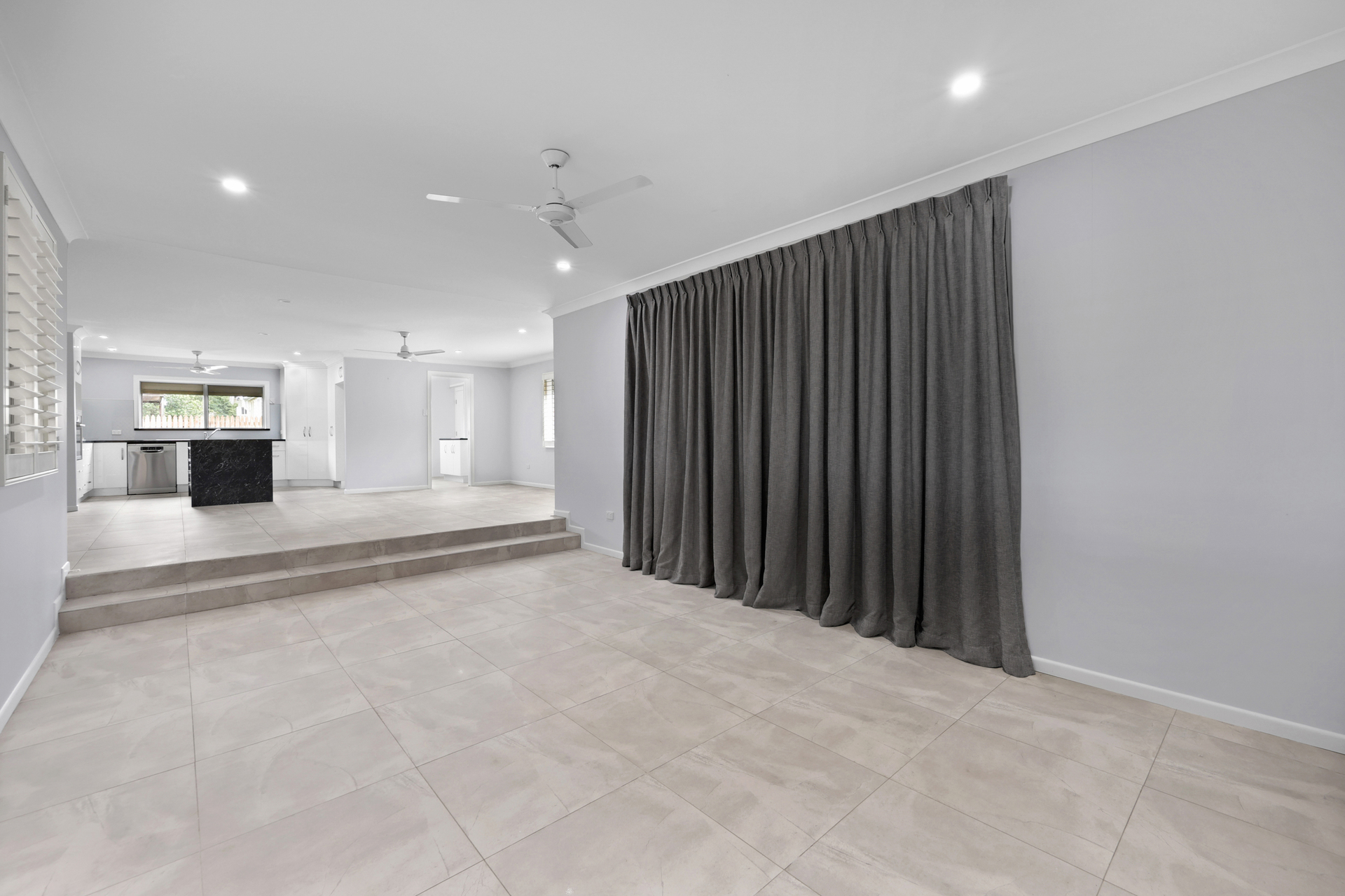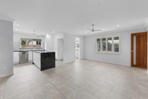 The roomy three bedroom home offers a recently renovated kitchen with the pantry designed with pull out drawers for convenience. The large open plan family area adjacent to the kitchen can be utilised for both dining as well as a family room. The sunken roomy lounge is complimented with plantation shutters and is just a step down away from the central hub of the home.