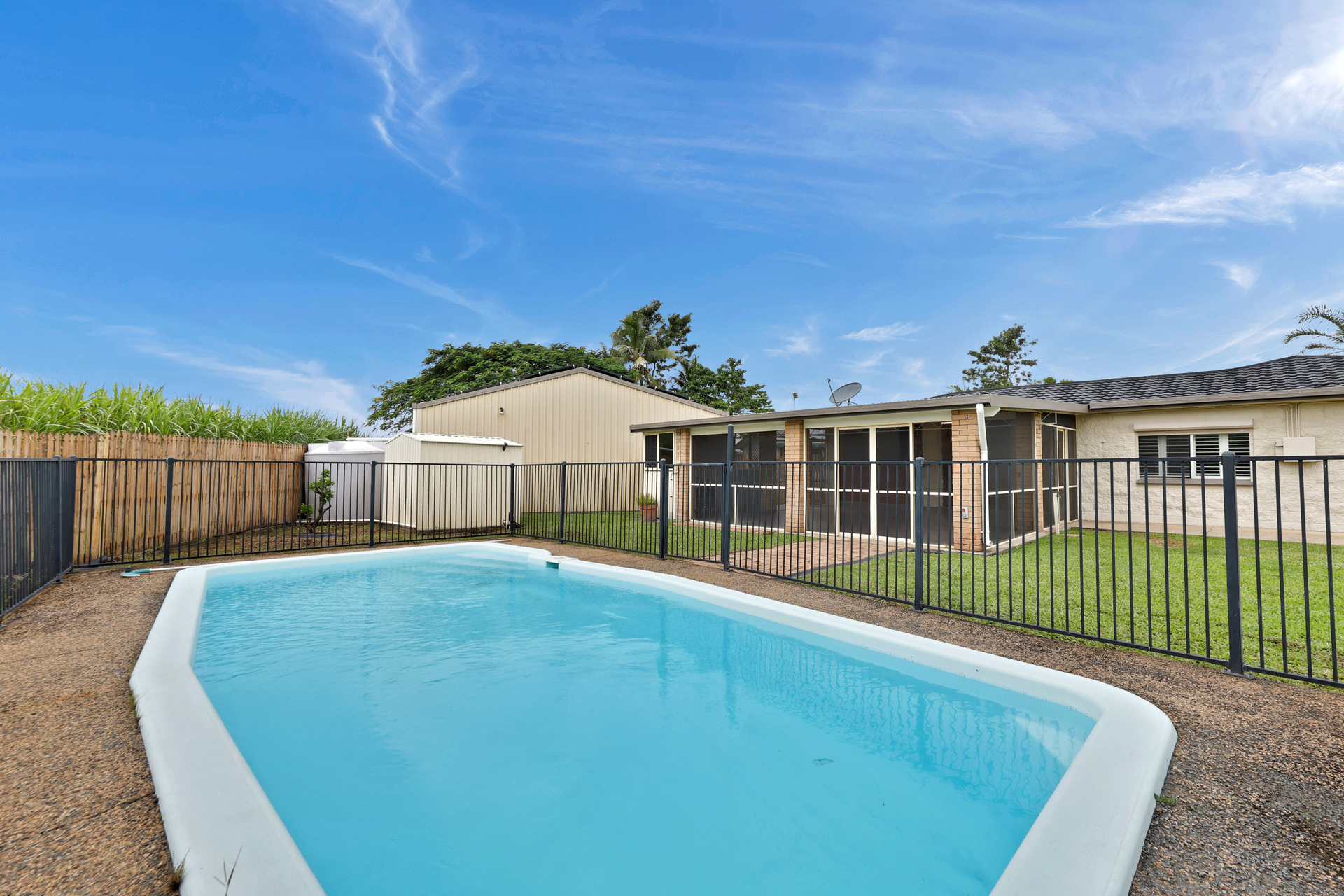 The home is connected to bore water and the shed has a rainwater tank attached meaning no water bills incoming.