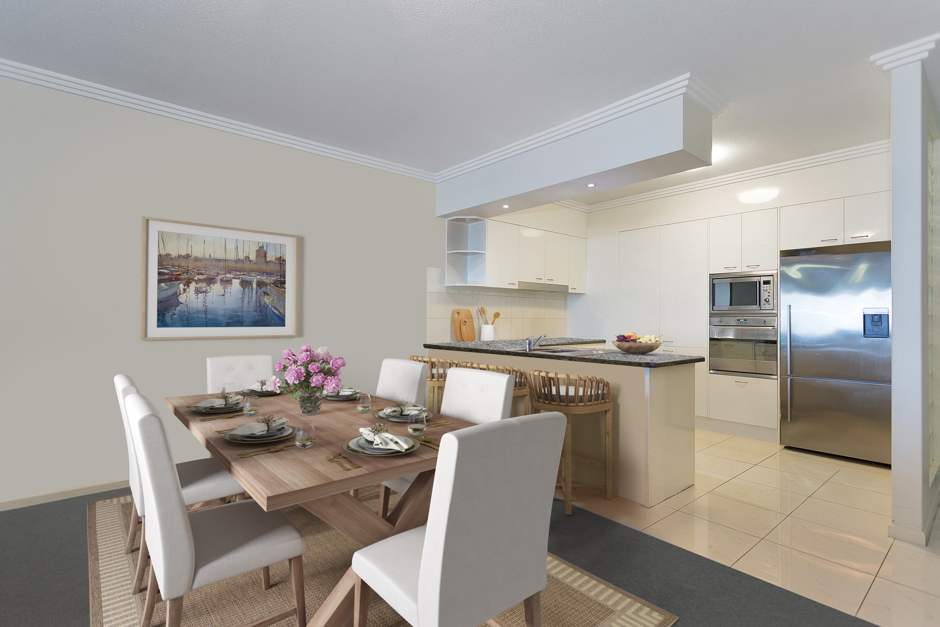 – Kitchen with high-quality appliances, granite benchtop and plenty of cupboard space.