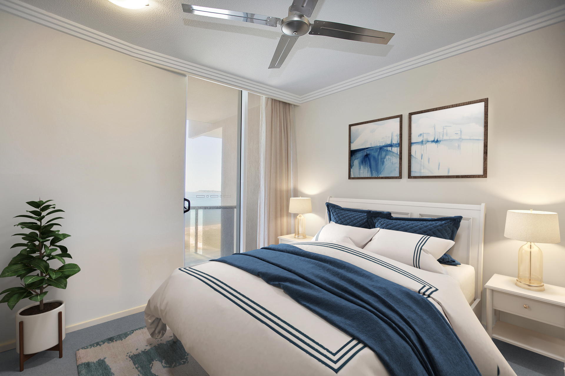 – Master Bedroom with exceptional ocean views and balcony access, walkthrough wardrobe into the ensuite with a shower, toilet, and double vanity.