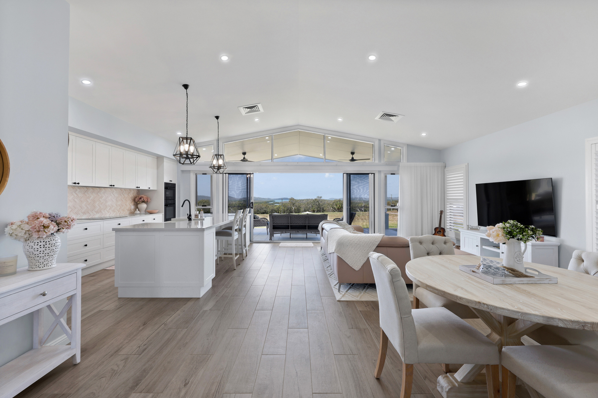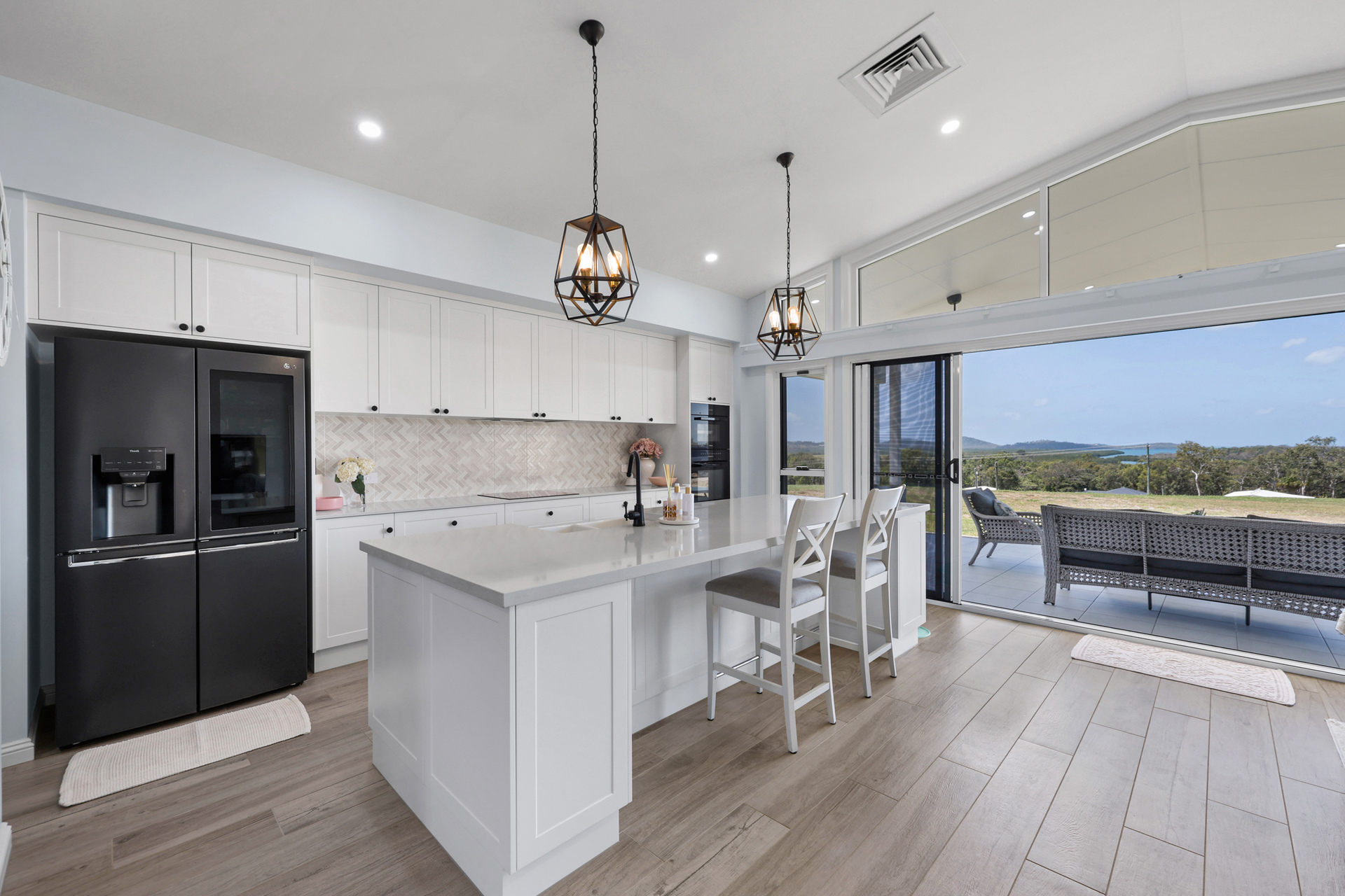 Perched high on an elevated 2-acre block, this brand-new Hamptons-style residence captures the very best of both worlds – breathtaking ocean views to the east over Sarina Inlet and sweeping rural vistas to the west. Completed in 2024, this home delivers a flawless blend of timeless style, modern comfort, and practical design.