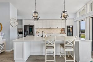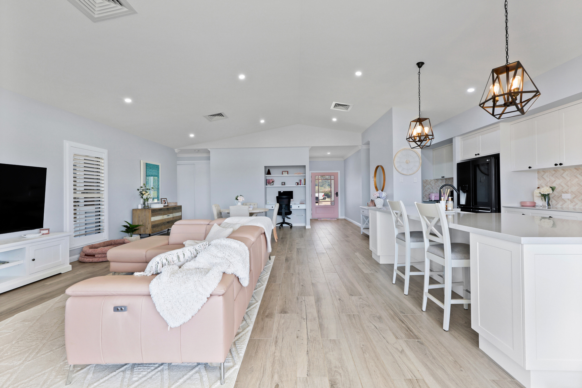 Step inside to discover a spacious 272 sq. m floorplan where raked ceilings and the expansive use of glass create a sense of light and openness. The heart of the home is the amazing kitchen, complete with stone benchtops, Miele appliances, double oven, butler’s pantry, pendant lighting and a large island bench that seamlessly connects to the open plan living and dining areas. A handy study nook makes working from home effortless, while the separate media room offers the perfect retreat for family movie nights.