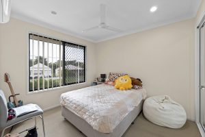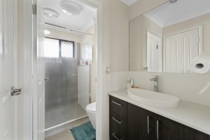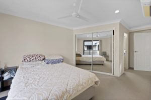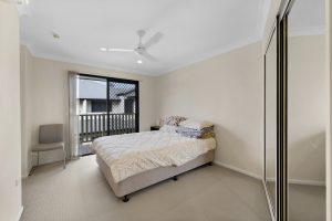 Upstairs, three generously sized bedrooms await – each with built-in wardrobes. The master suite features its own ensuite, air-conditioning, and private balcony, offering a peaceful retreat. The main bathroom is designed with function in mind, featuring a separate toilet, shower, and vanity to comfortably service the remaining two bedrooms.