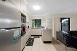 Downstairs, the kitchen, dining, and lounge areas flow seamlessly together and open directly onto the front patio – perfect for entertaining or relaxing. The kitchen is designed with ample bench and cupboard space, overlooking the living area to keep you connected while cooking.