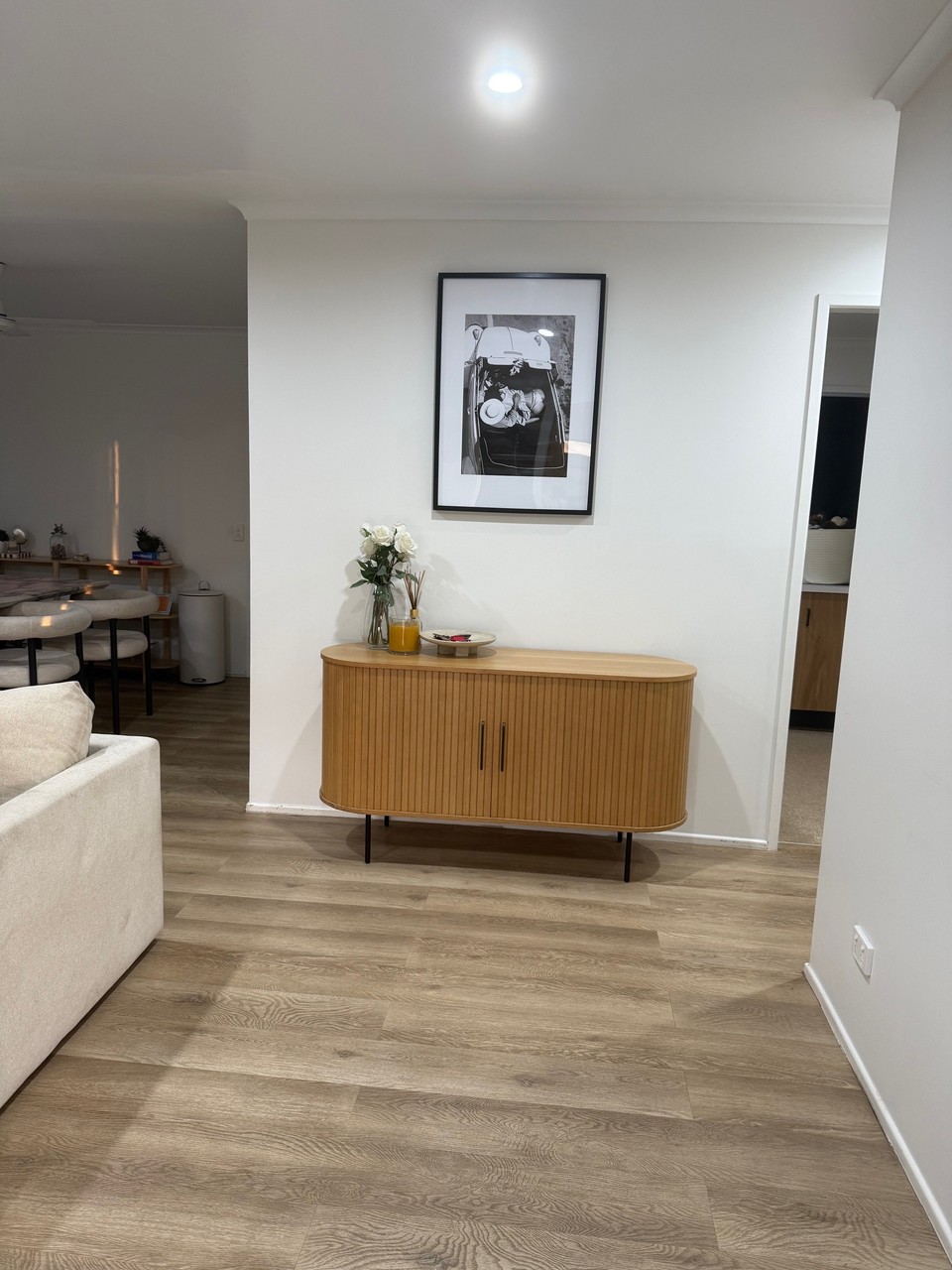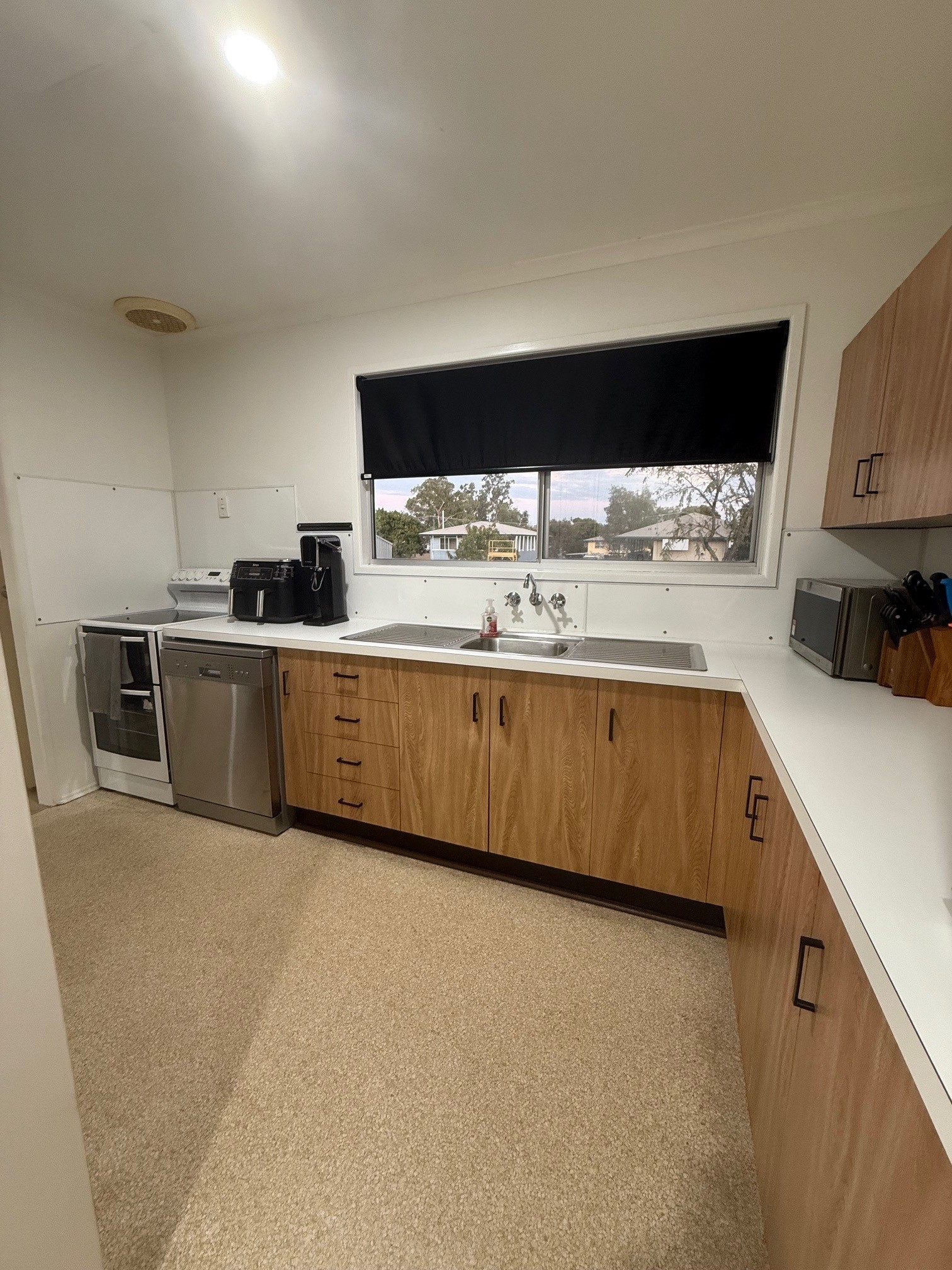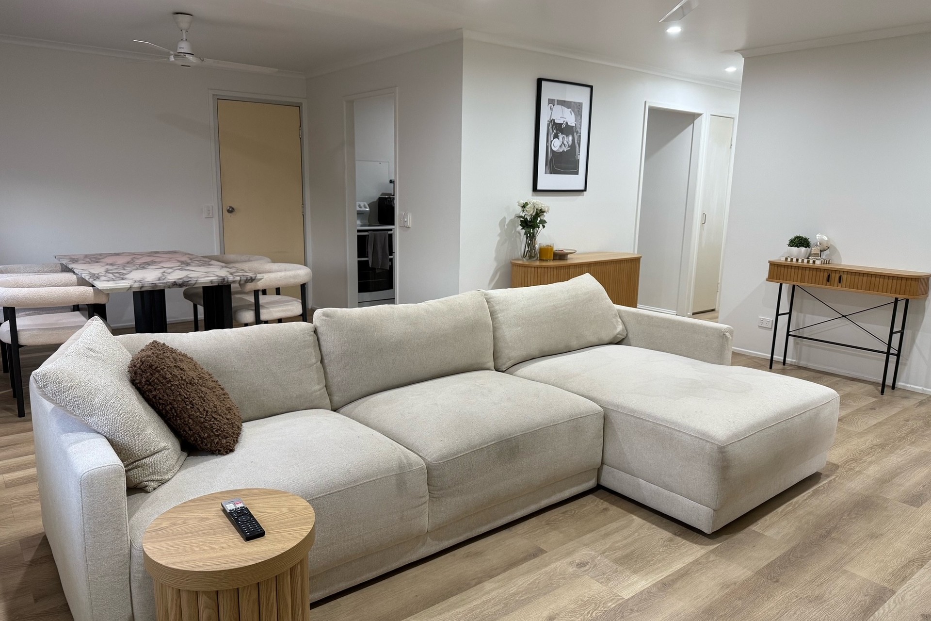 Step inside and you’ll find a light-filled open plan living and dining area, anchored by a spacious and well-appointed kitchen with ample bench and storage space, the perfect setting for everyday meals or entertaining. Modern downlights throughout give this home a fresh, contemporary feel, while air-conditioning ensures year-round comfort.