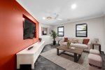 A self-contained granny flat completely shed protected features separate power and septic, with an impressive wrap-around timber deck. Inside, it offers two bedrooms plus a sleepout, tiled living areas, and carpeted bedrooms. The open-plan layout includes a full-sized kitchen with electric appliances, a modern bathroom and internal laundry, and a single air conditioning unit that cools the entire space.