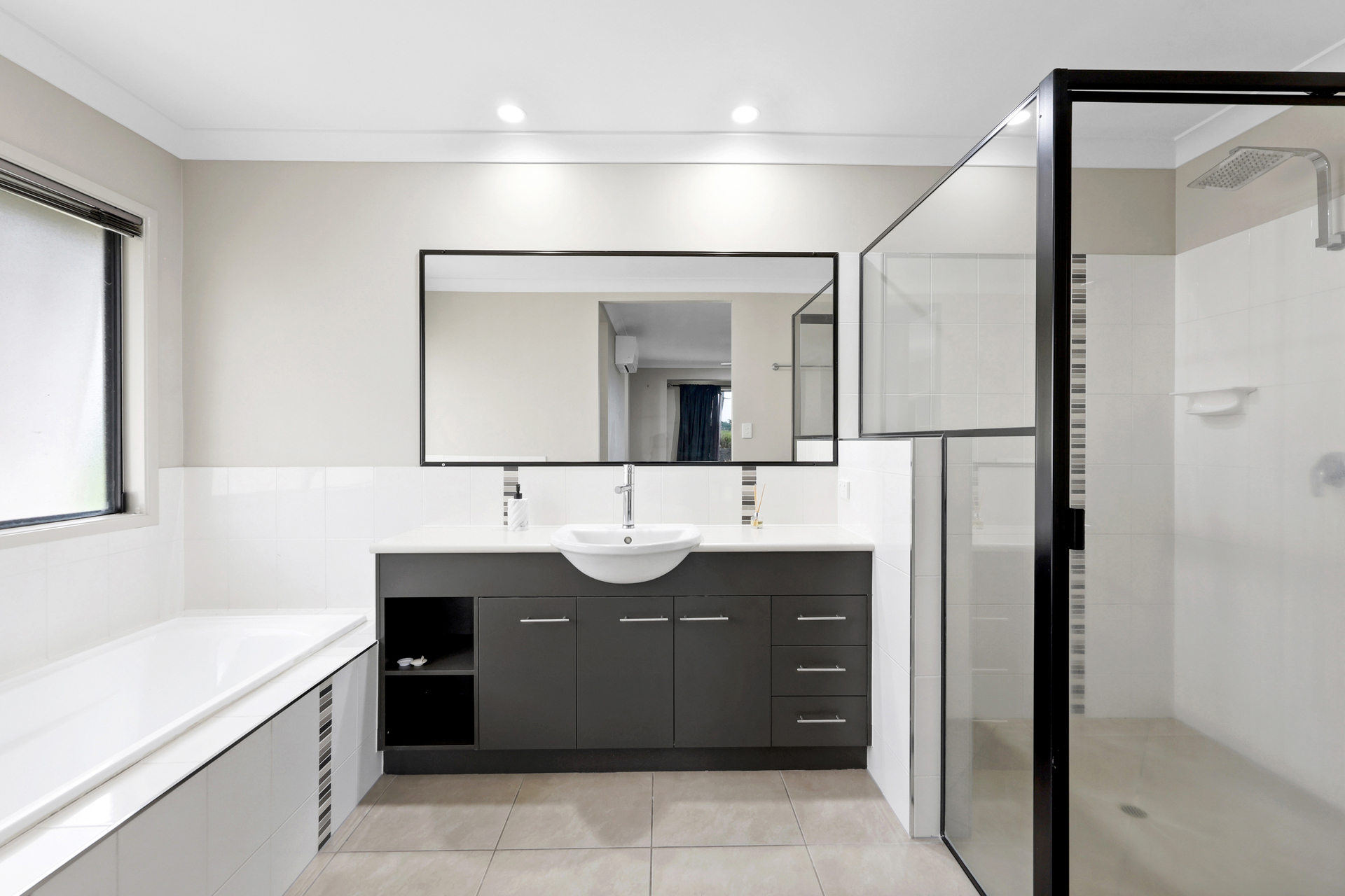 This fully airconditioned home features tiled living areas, a spacious open-plan kitchen with gas cooking and ample storage, a large dining area, and a dedicated media room. The master bedroom includes a walk-in robe and ensuite, while bedrooms 2–4 offer built-ins and ceiling fans, and a study completes the floorplan. The converted front double garage adds extra versatility.