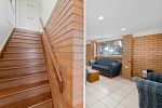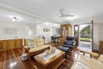 The upper level of the dwelling comprises three air conditioned bedrooms with ceiling fans and built in robes; bathroom and separate toilet; living area, air conditioned kitchen/dining area and front and rear balconies.