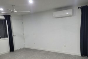 Open-plan kitchen, living, and dining area with new air-conditioning