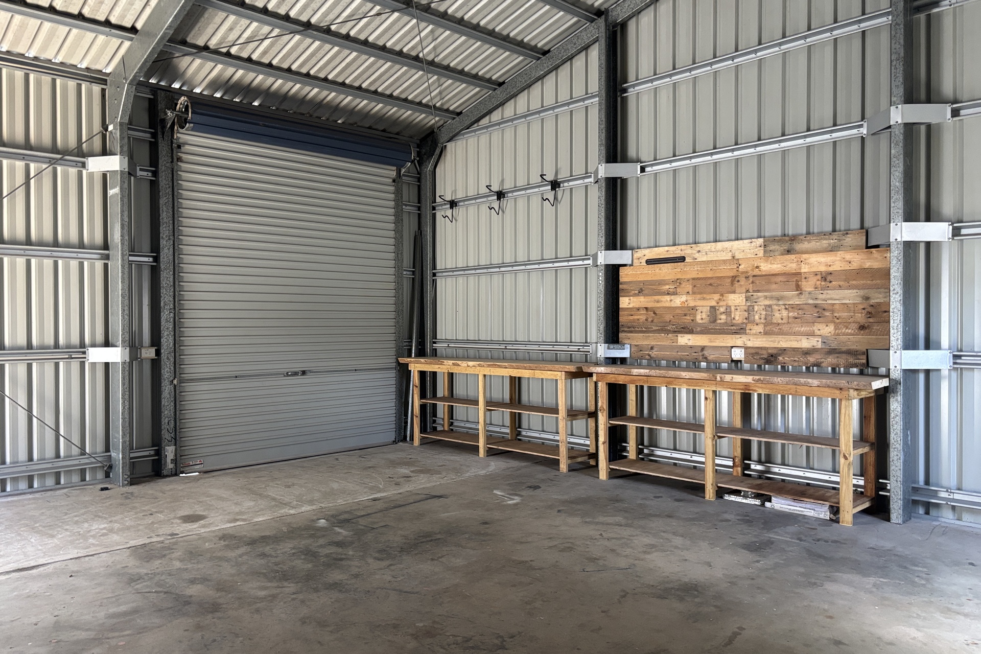 * 2-Bay Shed with Power, Cooling Fan, Timber Benches